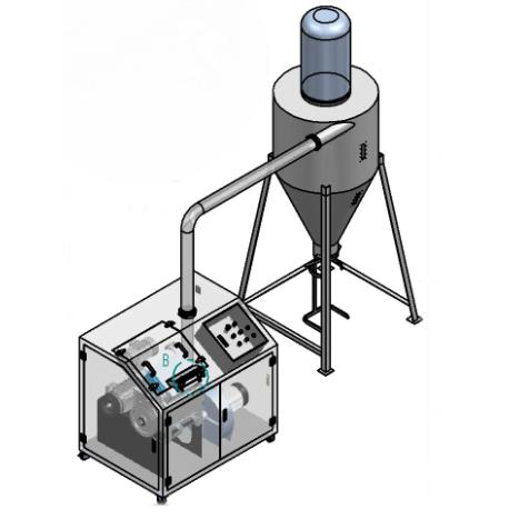 本系列機型,針對PP,PE片材,或薄膜,流延膜,保鮮膜,收縮膜,氣泡膜的押出機,分切機,或吹膜機生產的片材,或薄膜邊料,通過粉碎機上的滾輪牽引裝置,自動拉入粉碎機粉碎后,再以送風裝置和螺桿將粉碎后的物料押送到主設備中回收利用,實現邊料的自動粉碎再回收,效率高,低能耗,節省人工成本